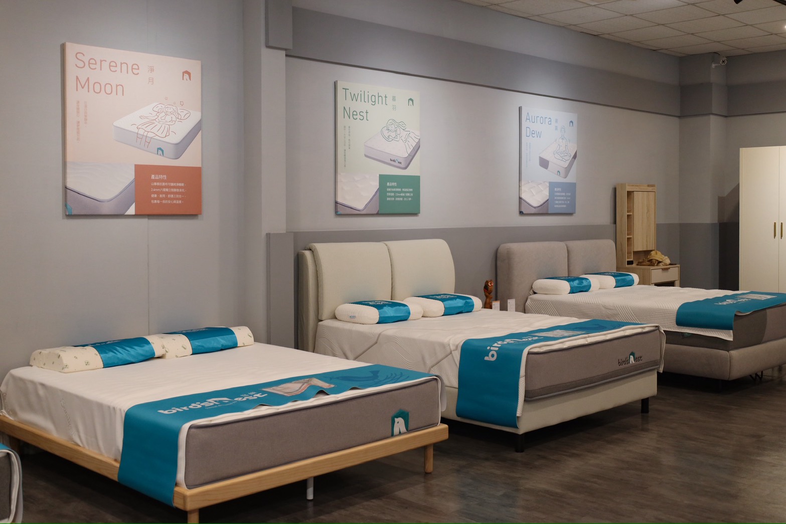 酷鳥窩門市後方是舒服的床墊體驗展區,燈光溫暖,真的好適合體驗