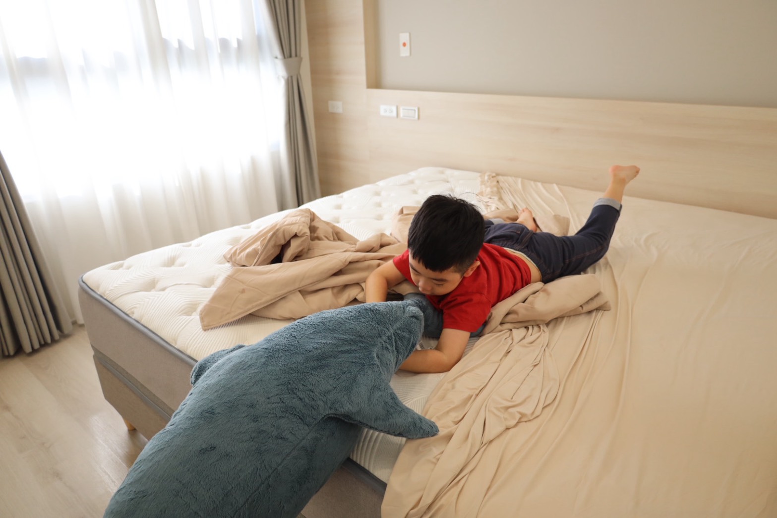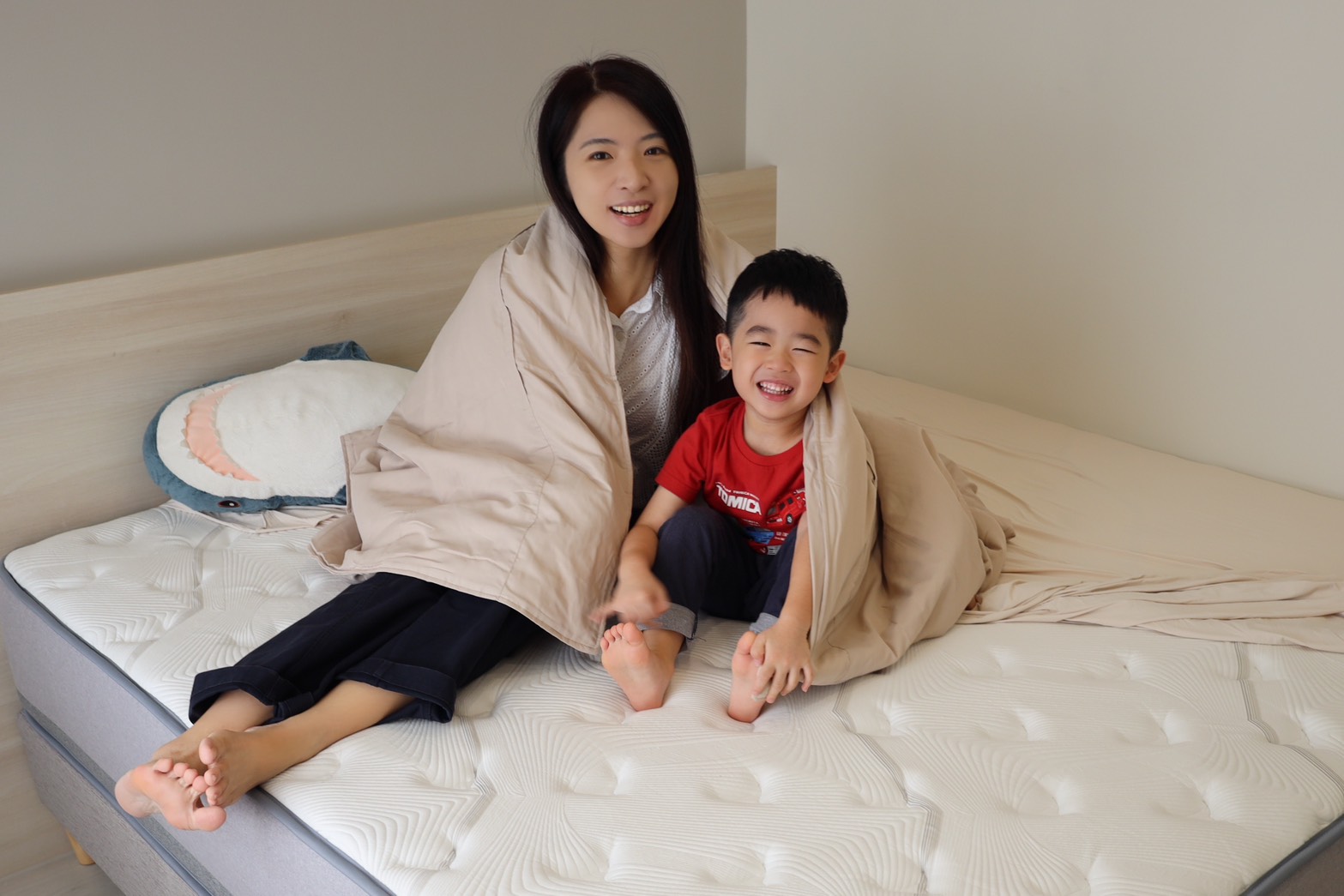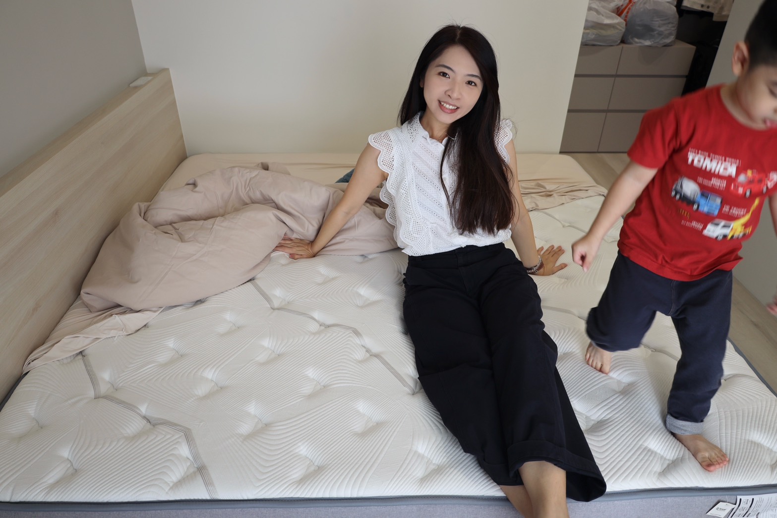 床墊一送到,小外甥就超興奮,直接實測,小朋友在床上跑跳,大人躺著幾乎不受影響。更不用說一般翻身完全不互相干擾,睡眠不被打斷。床面穩定、不晃動,怎麼動都安心~~