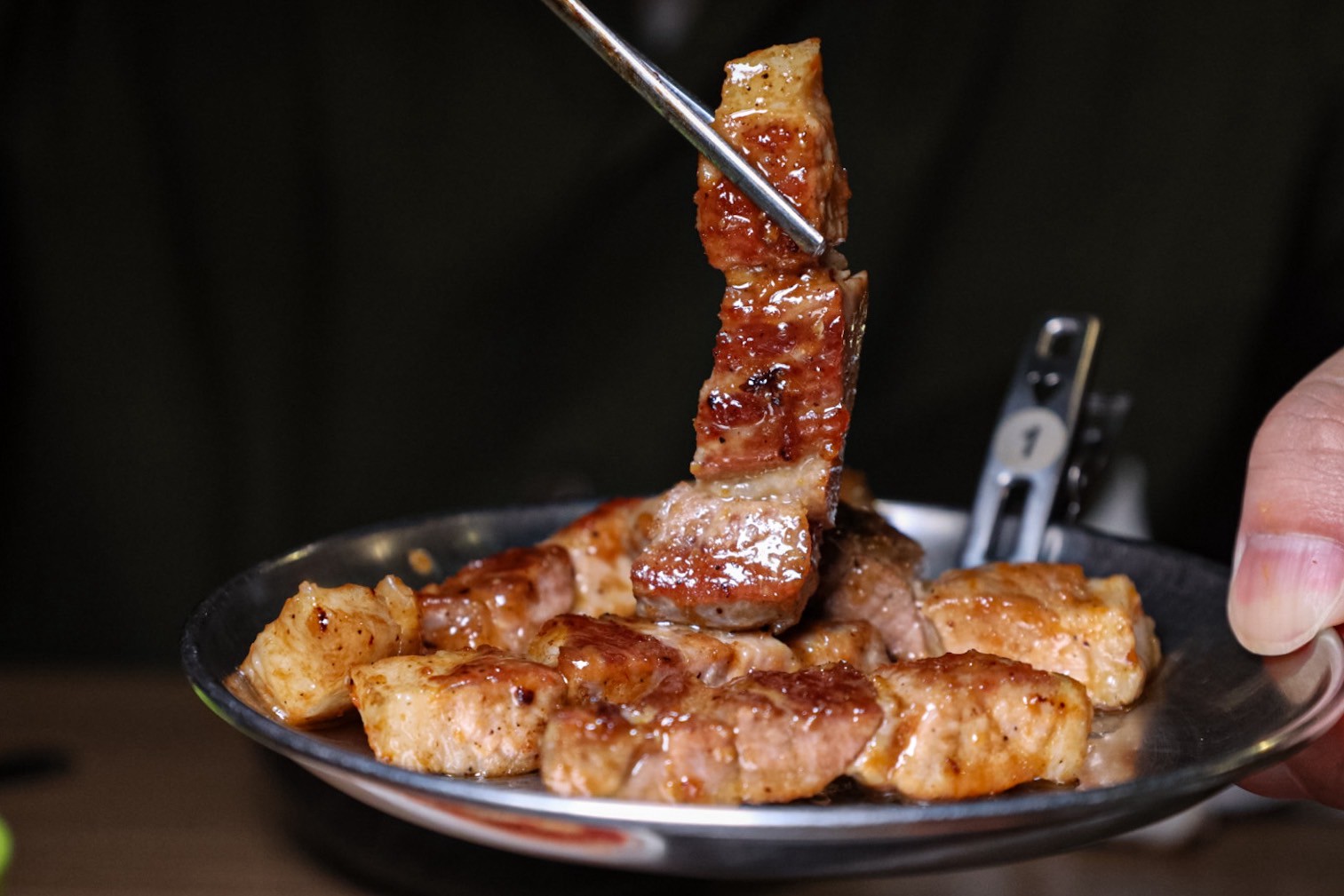 想體驗大口吃肉的感覺,就選這個霜降牛,油花較少瘦肉非常多,超大一塊,韓醬入味(好想夾一片刷上烤奶油的土司啊…)